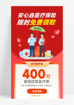 红色简约时尚大气医疗保险医生住院补贴活动海报手机ui