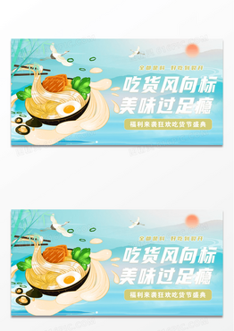 蓝色国潮风吃货风向标美味过足瘾美食展板