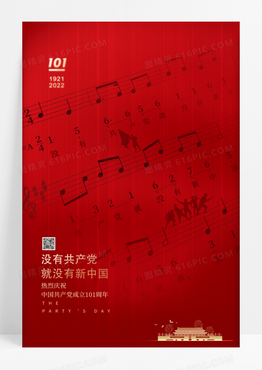 红色创意歌谱建党节宣传海报