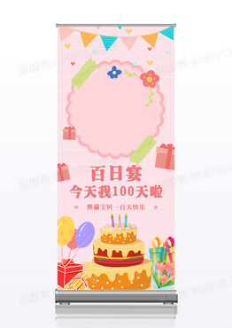 粉色梦幻生日宝宝百日宴宣传易拉宝展架
