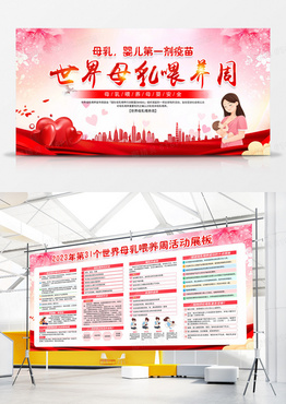 世界母乳喂养宣传周母乳婴儿第一剂疫苗宣传展板