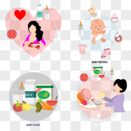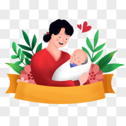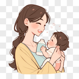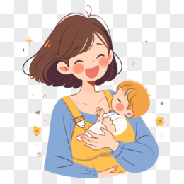手绘卡通妈妈和婴儿母乳喂养免抠元素