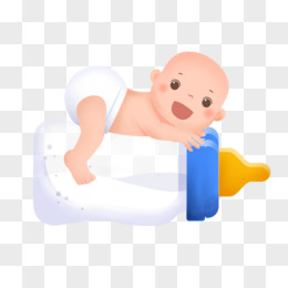 手绘卡通抱着奶瓶的婴儿免抠素材