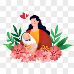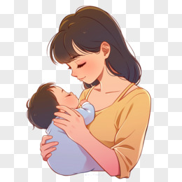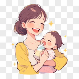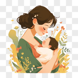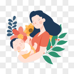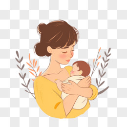 手绘卡通妈妈母乳喂养宝宝免抠素材