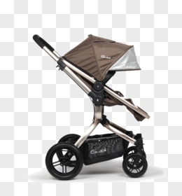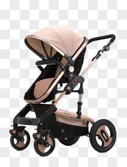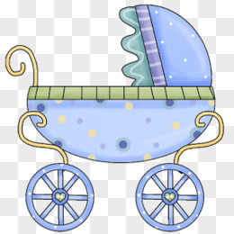 手绘卡通妈妈用婴儿车推着婴儿散步免抠元素