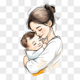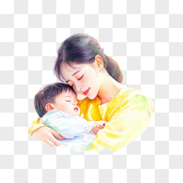 插画穿着旗袍的母亲抱着婴儿免抠元素