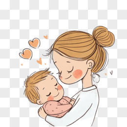 卡通母亲抱着婴儿坐在沙发上免抠元素