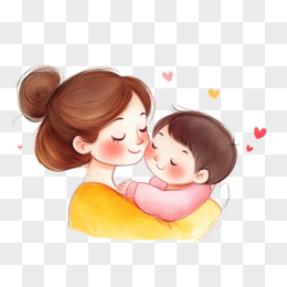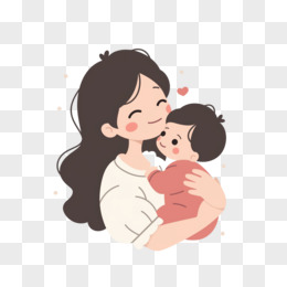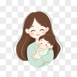 卡通穿着棉服的母亲抱着婴儿免抠元素