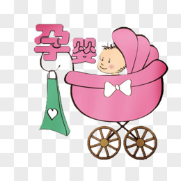 手绘卡通妈妈用婴儿车推着散步免抠元素