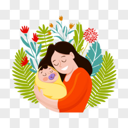 手绘卡通妈妈母乳喂养宝宝免抠素材