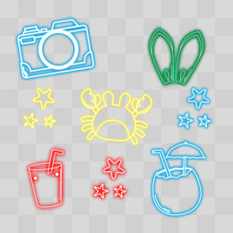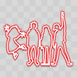 人物欢乐庆祝霓虹灯效果剪影装饰元素