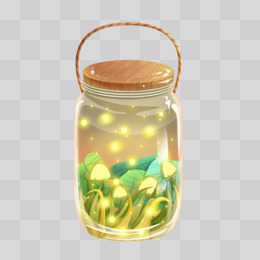 手绘插画男孩夜晚在草丛里抓萤火虫元素