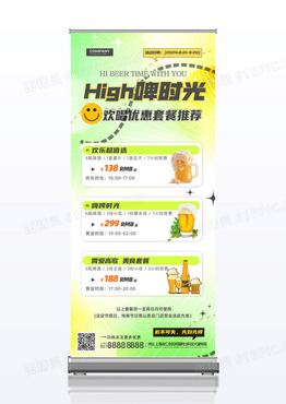 荧光绿弥散风啤酒促销活动展架啤酒易拉宝
