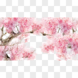 手绘粉色樱花花枝飘落花瓣免抠元素