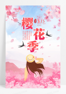 粉色唯美浪漫一起赏花樱花季宣传海报