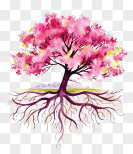 手绘粉色樱花花枝飘落花瓣免抠元素