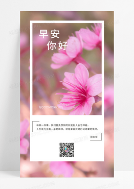 粉色春天樱花花瓣树枝春暖花开简约你好早安手机海报