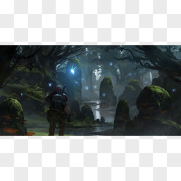 手绘梦幻微景观萤火虫景色萤火虫元素