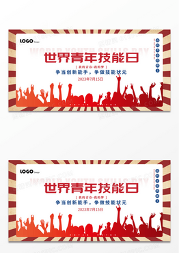 复古卡通简约世界青年技能日宣传展板