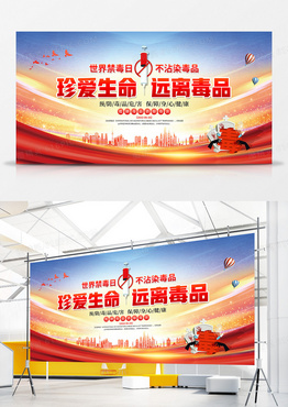 手绘卡通年轻人高举拒接毒品大旗插画免抠元素