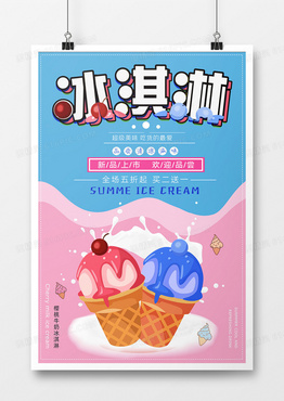 双层樱桃装饰可爱卡通冰淇淋夏天手绘免扣