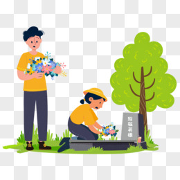 卡通手绘矢量人物悼念缅怀先人免抠元素