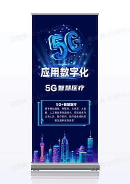 深蓝色科技风5G应用数字化数字化展架易拉宝数字化易拉宝