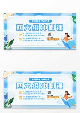 蓝色大气创意四六级冲刺课教育培训招生展板