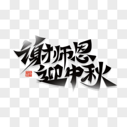 手写礼赞教师节情满中秋月创意毛笔字元素