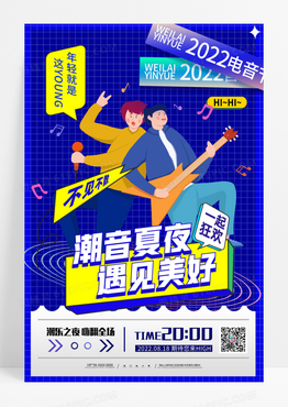 蓝色简约孟菲斯潮流夏夜遇见美好电音节宣传海报