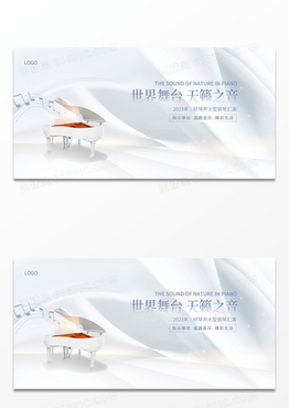 白色时尚钢琴音乐会演宣传展板