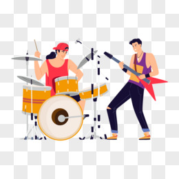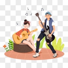 年轻人玩吉他乐器场景插画元素