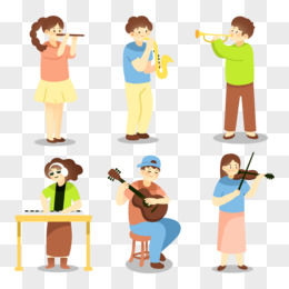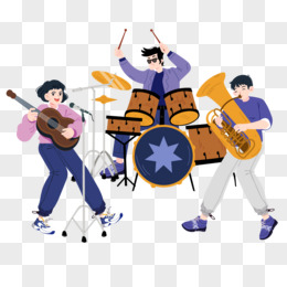 手绘插画风乐队表演免抠元素