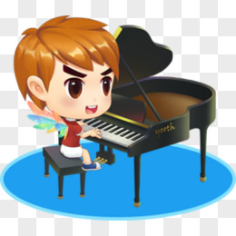 手绘女孩陶醉演奏钢琴免抠素材