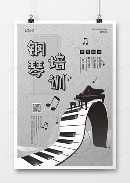 黑灰色高端钢琴培训音符简约风音乐培训海报