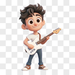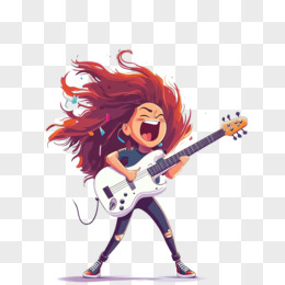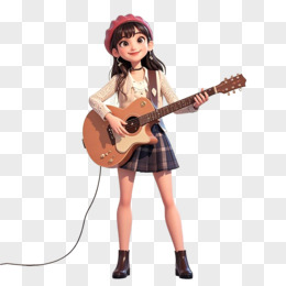 3D立体弹吉他的时尚少女免抠元素