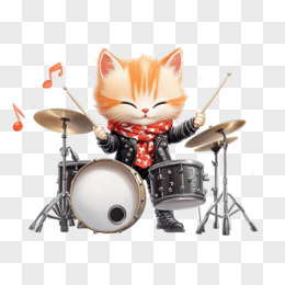 插画乐队鼓手小猫免抠元素