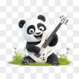 插画乐队动物吉他手熊猫免抠元素