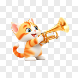 插画乐队小号小猫免抠元素