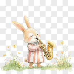 3D小动物小兔子演奏免抠元素
