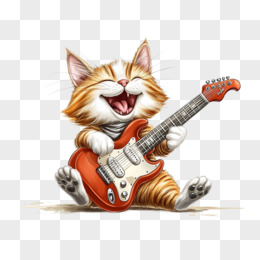 插画乐队贝斯小猫免抠元素