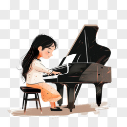 小女孩谈钢琴免抠元素