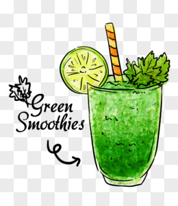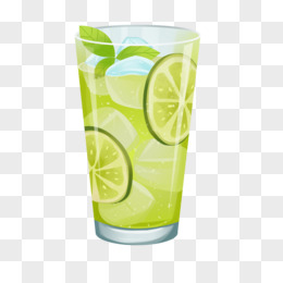 一组卡通手绘新鲜夏日饮品之青柠汁元素