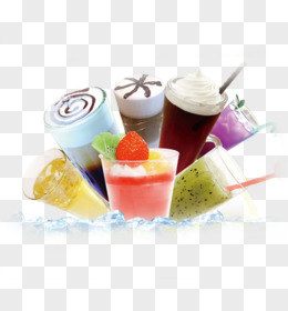 一组手绘水彩卡通夏天冰爽奶茶饮料套图素材