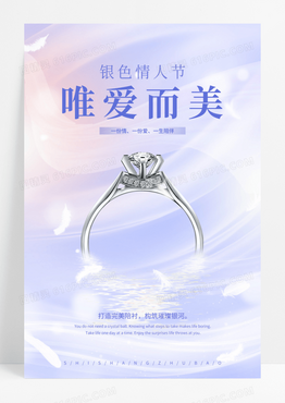 银色情人节珠宝蓝色粉色简约唯爱而美珠宝首饰宣传海报珠宝海报
