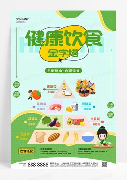 可爱卡通绿色健康饮食合理饮食金字塔海报设计