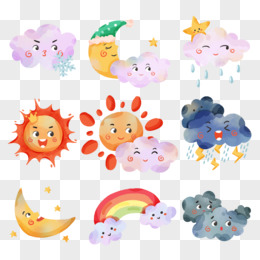 一组手绘可爱天气贴纸合集元素