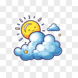 手绘卡通太阳躲在云朵里免抠元素