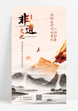 非遗文化篆刻印章黄色中国风海报海报设计图片手机海报