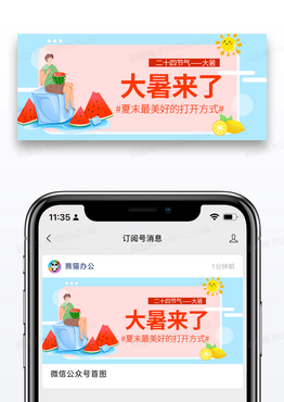 简约卡通时尚二十四节气大暑微信公众号封面图片